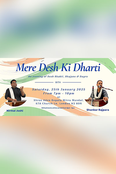 Come and celebrate Indian republic day with desh-bhakti, bhajan and dayro, performed by Nirmal Joshi and Shankar Rajpara.